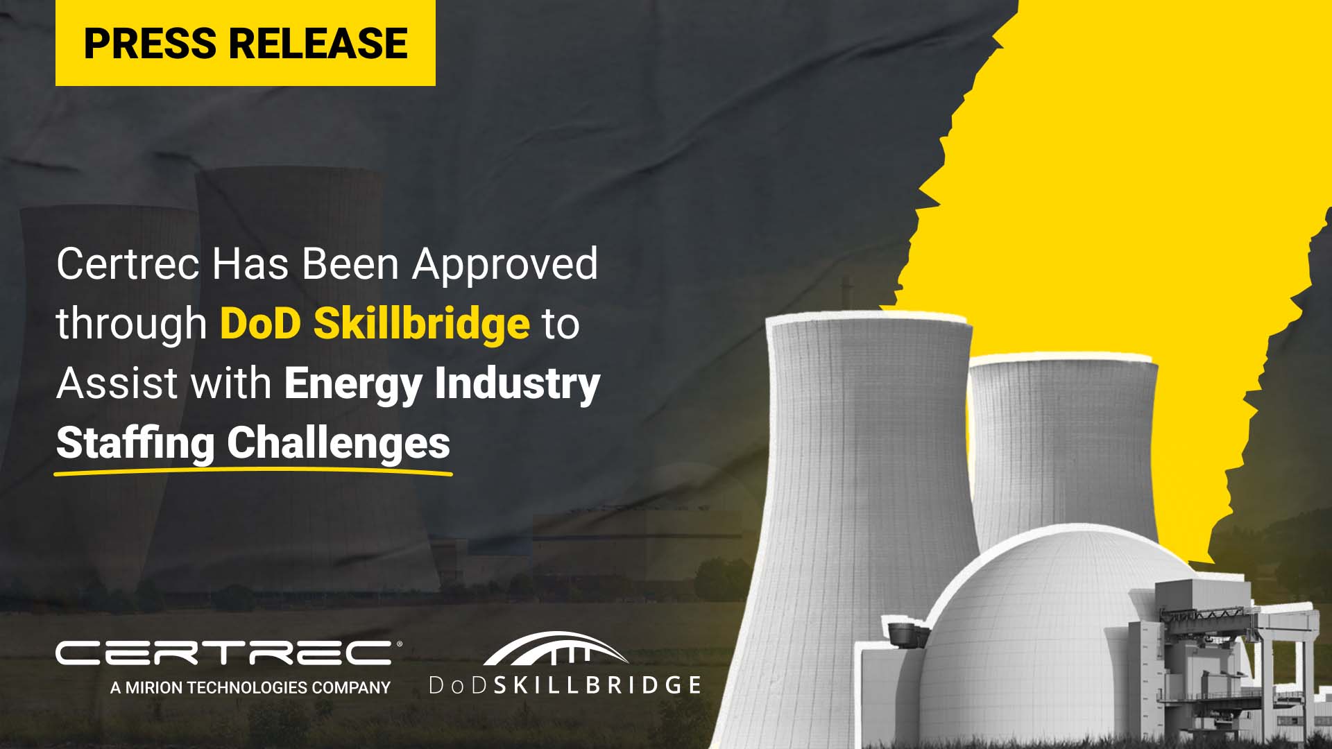 Press Release –With broad expertise in nuclear plant operations, Certrec will prepare military service members for employment in the energy industry as they transition to civilian life. Through the Skillbridge program, Certrec is committed to providing members of the armed forces with the opportunity to take their experiences, skills, and leadership to the energy industry for a more reliable electric power grid.